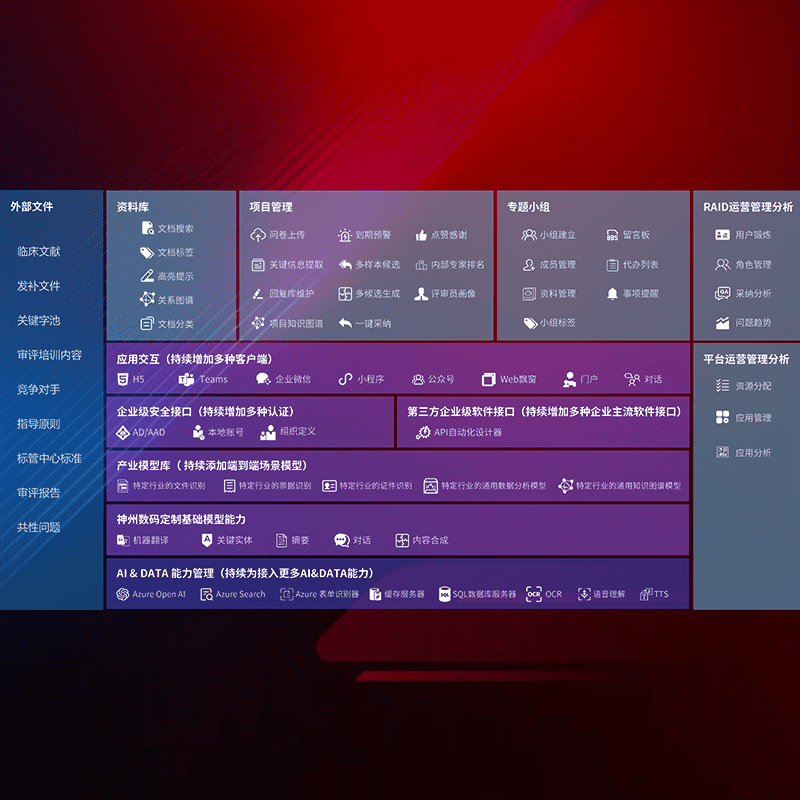 医疗器械产品上市前,,,要熟悉严格与繁复评审标准,,,,整理分析监管机构指导文件中的海量信息。。。企业急需一个智能化解决方案,,提升知识管理效率,,,,提高评审通过率,,,,以提升其市场竞争力。。。。