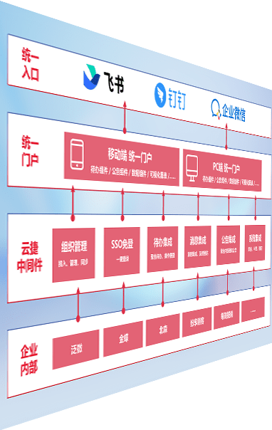 对协作平台提供支持服务,,支持企业应用与协作平台对接,,,包含组织同步、、、消息集成、、、待办集成等。。。。支持目前主流的协作平台:钉钉、、、、企微和飞书。。。